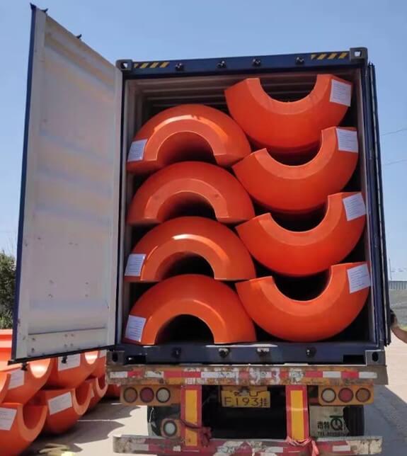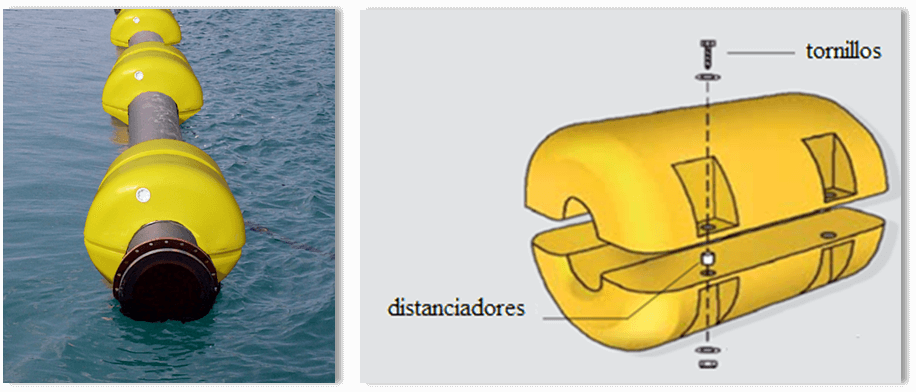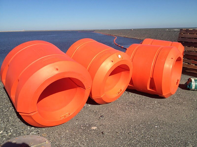 Los flotadores para tuberías tienen un casco rígido y un diseño aerodinámico. Los extremos cónicos en el exterior reducen la resistencia al agua y al viento. Tienen buena flexibilidad y excelente resistencia al impacto, por ello son especialmente adecuados para las instalaciones marinas y fluviales. Ideales para reemplazar a los pontones de acero usados en las aplicaciones de dragado. Tienen una alta resistencia a la corrosión y una vida útil más larga que podrían alcanzar 3 veces más que los pontones de acero.