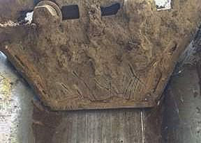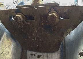 • Los rascadores auténticos sin protección sufren grandes daños por abrasión y pierden la capacidad de eliminar la acumulación de tierra (abajo, derecha).